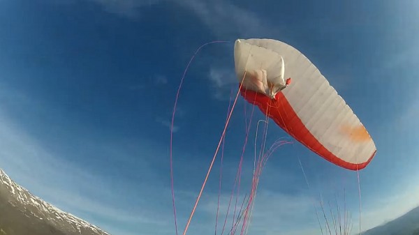 Le pilote sort de la voile et tire son secours, il n’a plus le choix, la situation est irréversible à ce niveau là.