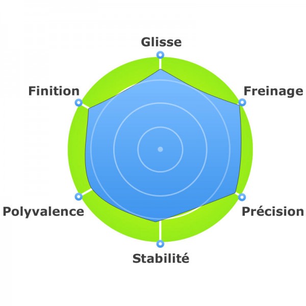 Sa précision et sa plage de vitesse importante permettent des prises de terrain justes, avec des marges de sécurité importantes. La prise de vitesse est franche, le flair facile à trouver et un arrondi grâce à un freinage profond permet de vous arrêter net. La repose au déco est facilité par une grande plage des basses vitesses exploitables.