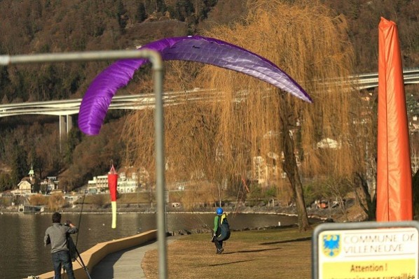 Je suis allé mercredi 22 février à Villeneuve, au bout du lac Léman en Suisse, pour assister à l’homologation de la voile Little Cloud Gyps 24m². C’est la voile hautes performances de la marque, destinée notamment aux competitions de hike and fly type X-Alps, Bornes to Fly…