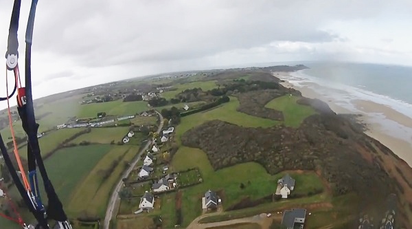 Le site de Saint-Pabu a deux décollages, un en haut avec 60 m de dénivelé environ, puis celui du bas (site le plus bas référencé à la FFVL) 5 m plus haut que la plage.