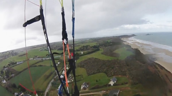 Lorsque tu fais du vol de pente, plus tu montes plus tu t’écartes, de manière à avoir une porte de sortie devant et, surtout en bord de mer, te permettre de faire les oreilles sur la plage avec de la place derrière, car, comme évoqué plus haut, la traîné générée par les oreilles nous ralentit plus que nous fait descendre. D’où l’intérêt d’être sur la plage voire sur la mer afin de sortir de l’ascendance dynamique.