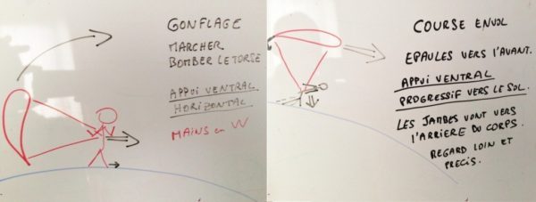 Dans un article, Jérôme Canaud aborde l’importance de l’appui ventral pendant les phases de gonflage et décollage. Pourquoi la charge (le poids sur la ventrale) est prioritaire sur la course et dans quelle direction doit on appuyer ?