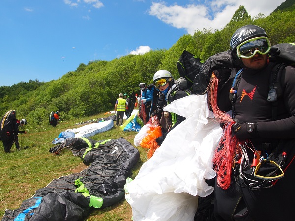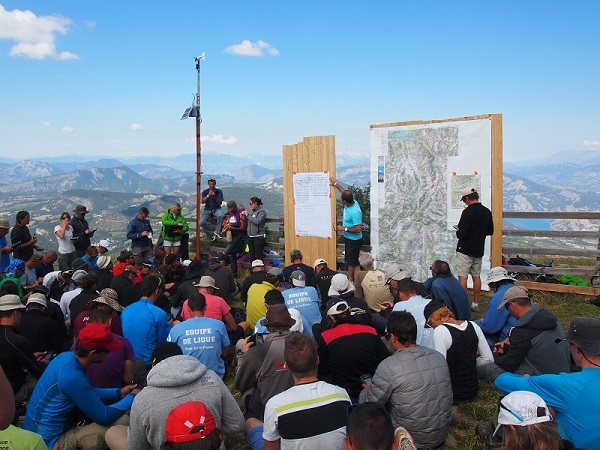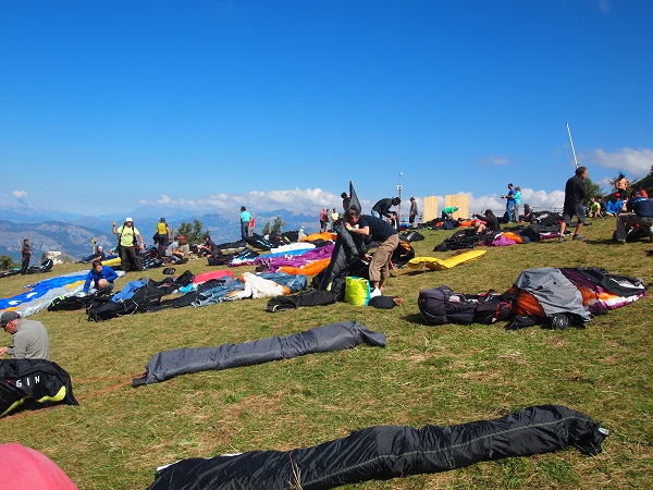 Un cri traverse la zone de décollage, une corne de brume résonne, un mouvement général se produit parmi les pilotes si tranquilles jusque-là : vous êtes appelés par l’organisation pour le briefing officiel du jour. Ce briefing est composé de 2 éléments : le panneau et le discours.