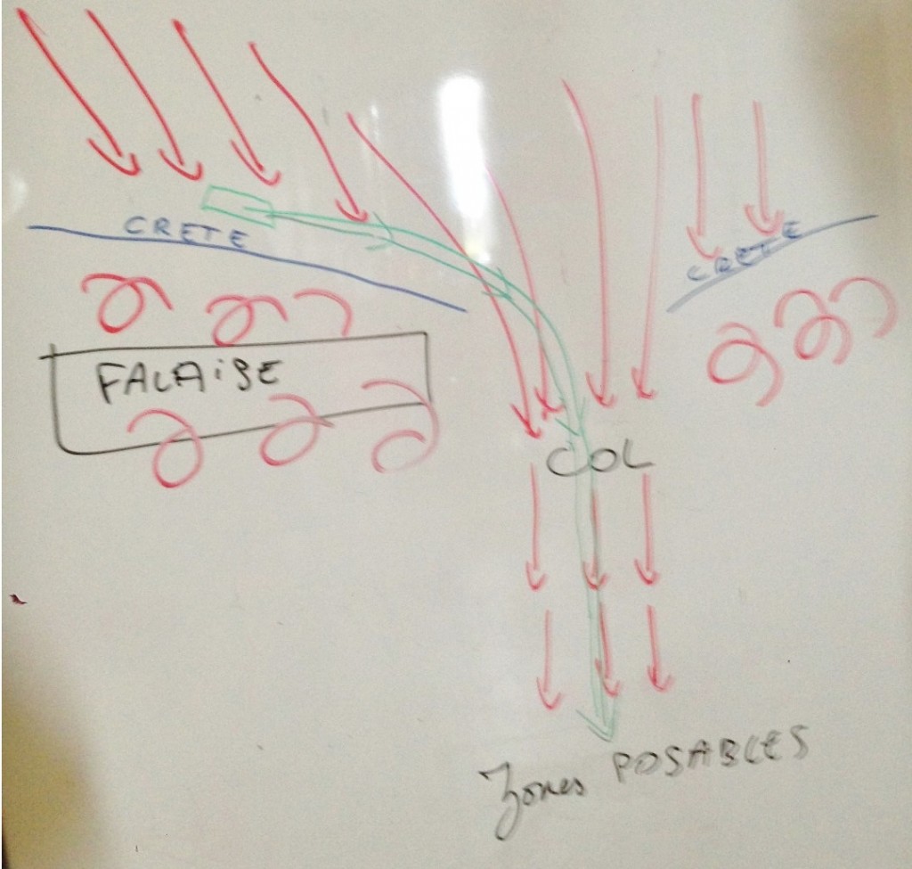 Et pourquoi rester sous le vent de l’obstacle plutôt que de partir en diagonale pour essayer de se dégager de la zone turbulente.