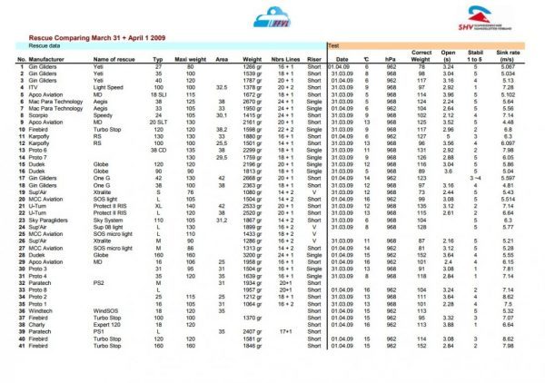– Le taux de chute est primordial (la stabilité pendulaire aussi, mais ces deux paramètres sont interdépendants, comme nous le prouvent les tests de 2009). Selon François, 5,5 m/s est déjà un chiffre limite… S’il est possible d’avoir moins, c’est vraiment mieux.