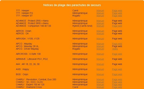 Difficile de trouver la véritable origine de ce tableau, mais a priori, Air Turquoise (organisme d’homologation) aurait réalisé une série de tests avec des produits issus directement du marché (et non ceux qui sont envoyés pour homologation… ); et la FFVL et le SHV (Suisse) communiquent à l’époque les résultats de ces testq qui sont pour certains effrayants. Ce que l’on peut en retirer :