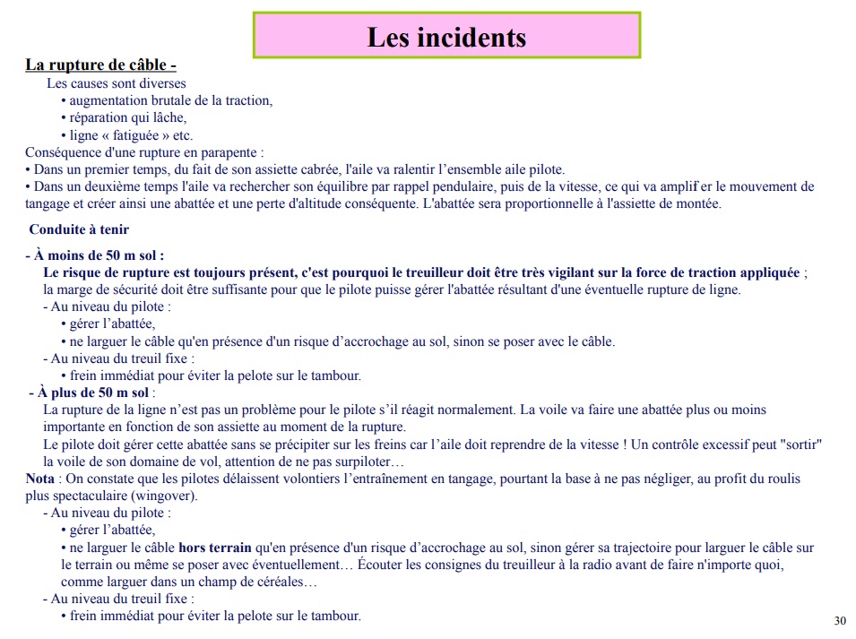 Vol treuil parapente : problème au largage du cable