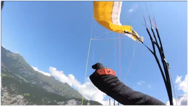 Puis la suite, la voile ne revole pas, reste hors du domaine de vol (parachutale, vrille, décro asymétrique, décrochage). Cela est dû à du surpilotage = à aucun moment le pilote se remet complétement bras hauts pour que la voile puisse revoler.