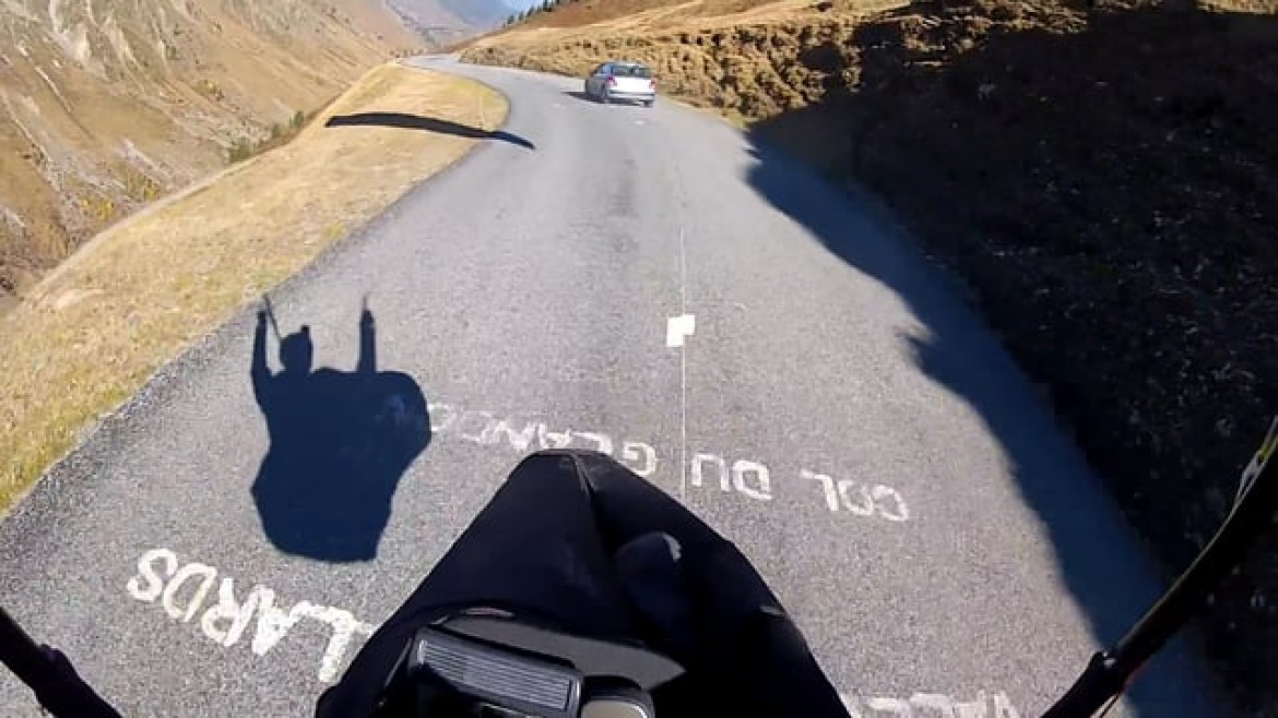 Le Col du Glandon est un lieu réputé pour les pilotes habiles en vol près du sol. Voici l'exercice auquel s'est prêté Damien : descendre le col par la route